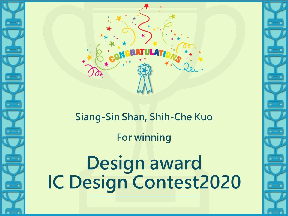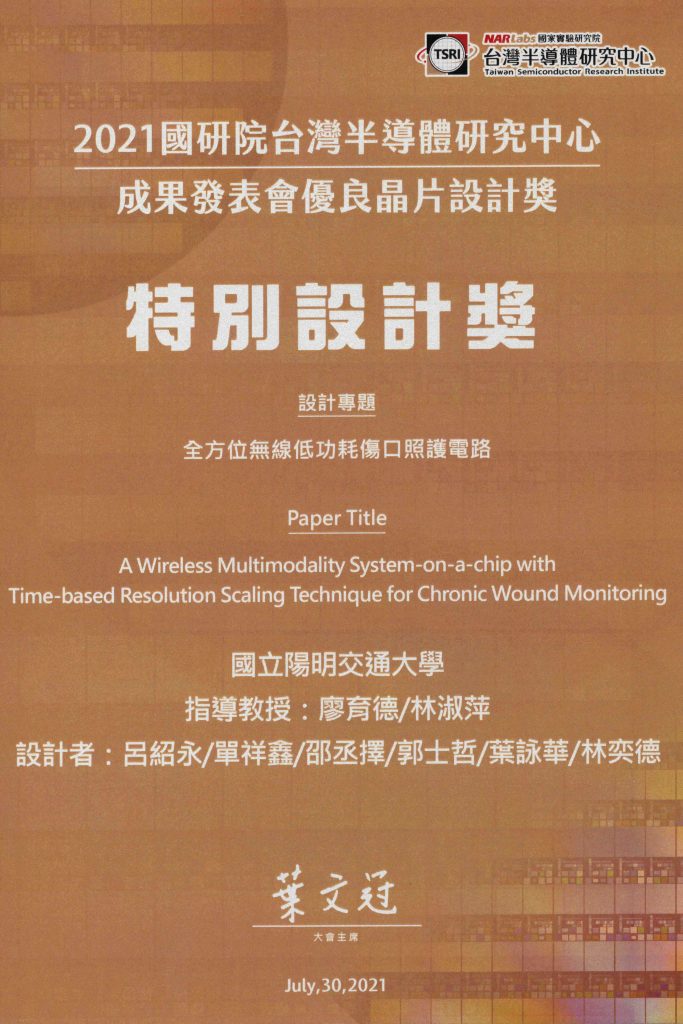 Congratulations! Dr. Shao-Yung Lu, Dr. I-Che Ou, Shiang-Sin, and Cheng-Ze received Chip Design Awards (Analog/Mixed Signal Category), TSRI, 2021.