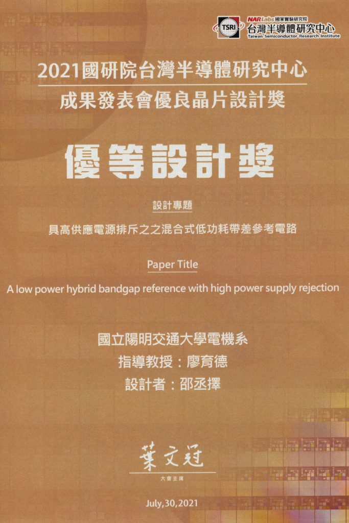 Congratulations to Cheng-Ze for his CMOS voltage reference paper in VLSI-Symp. Circuit, 2021.