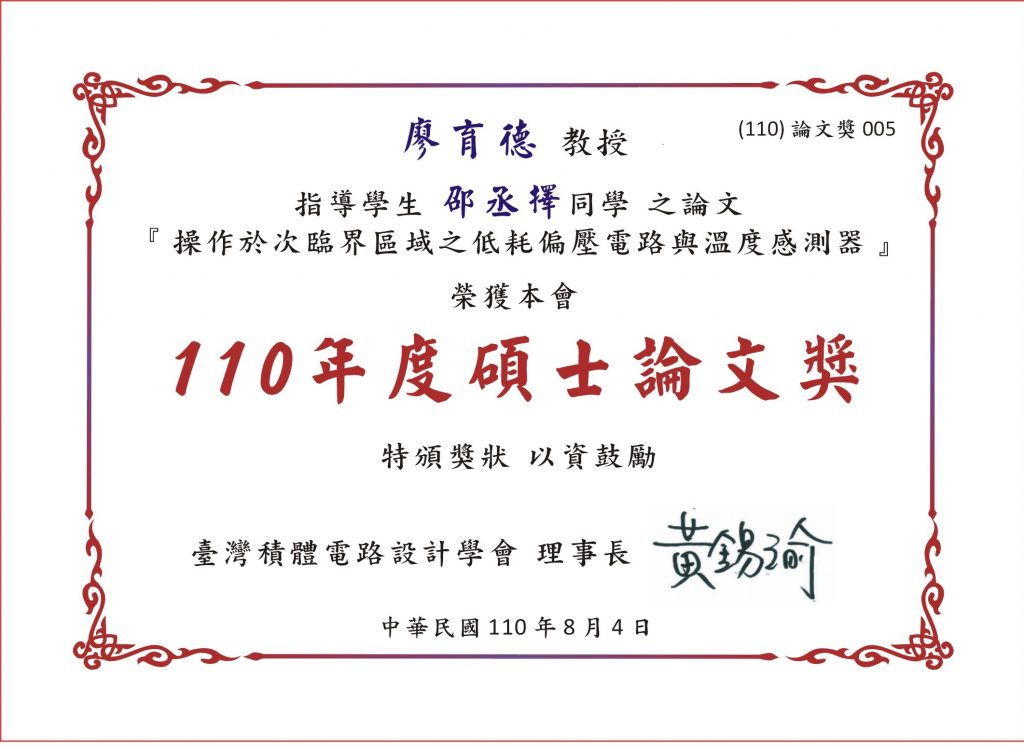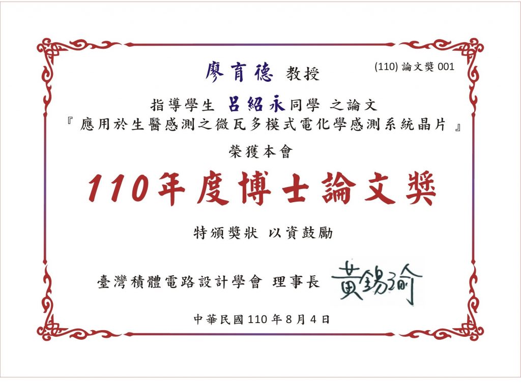 Congratulations! Dr. Shao-Yung Lu and Cheng-Ze received TICD Best Ph.D. Dissertation Award and Master Thesis Award, 2021, respectively.