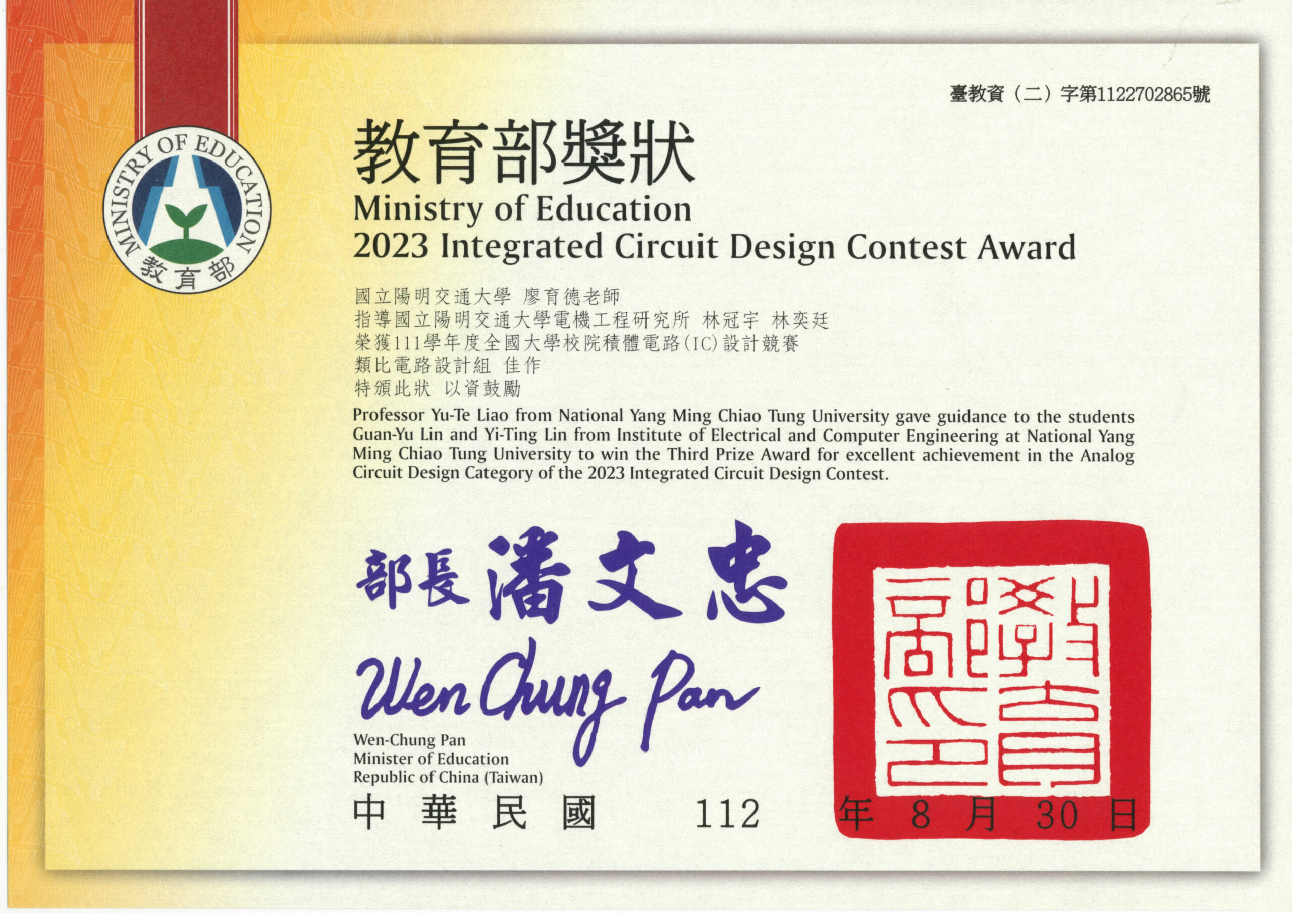 Congratulations to Po-Hsun, Cheng-Tse, and Yu-Siang for their paper accepted by VLSI Symp. Circuits 2024.